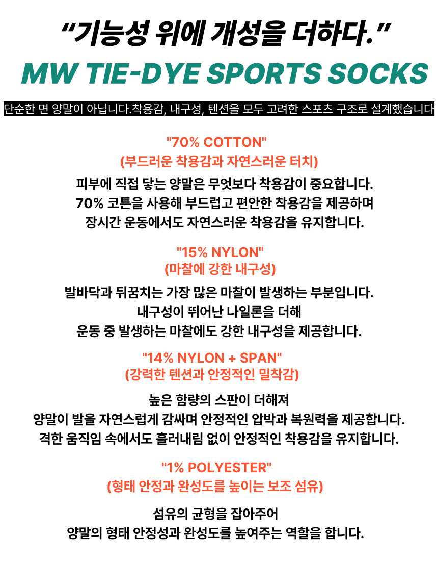 MW 타이다이 프리미엄 스포츠 쿠션 운동 양말 (4컬러)SALE