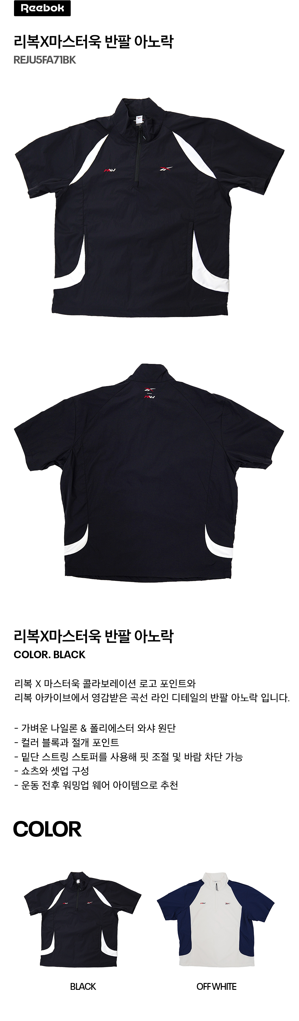 리복x마스터욱 콜라보레이션 반팔 아노락 블랙